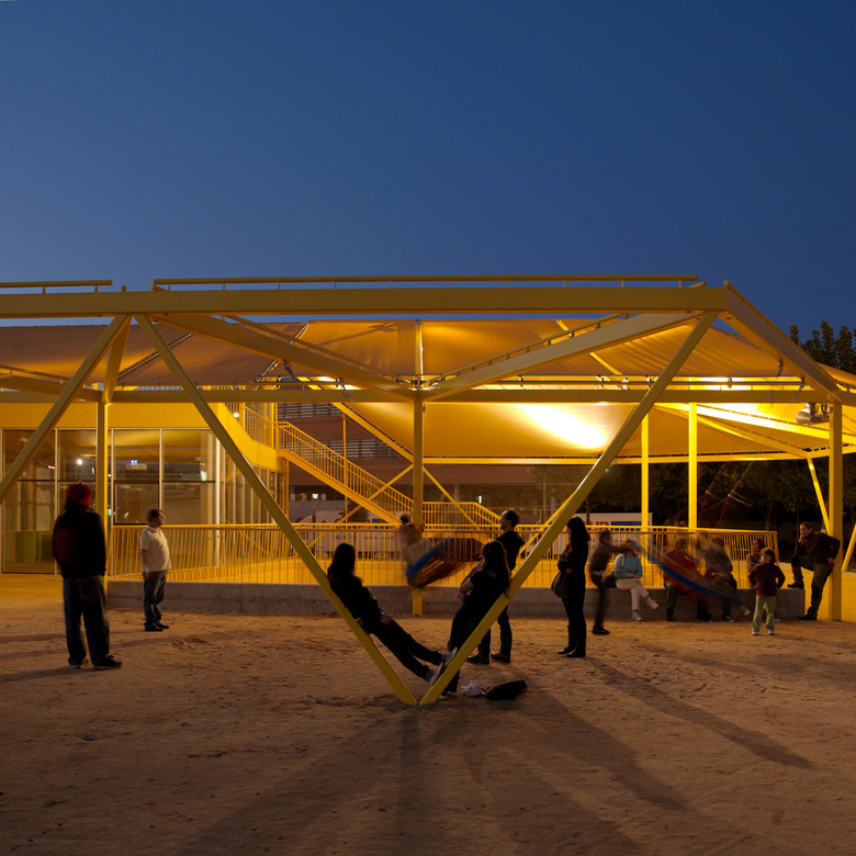 An artificial topography has been created as an enclosure and protection filter from the aggressive industrial environment, within the plaza it is easy to forget about the context and to imagine you are somewhere else, closer to nature.