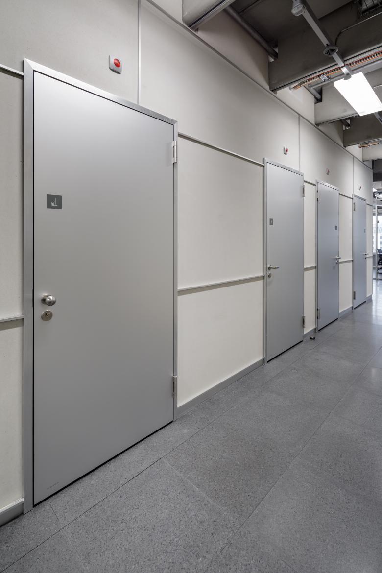 Ein Projekt, das es in dieser Dimension schweizweit noch nicht gegeben hat: Der Neubau des News-, Sport- und Technikzentrum des SRF in Zürich-Leutschenbach ist hochkomplex, werden doch sämtliche Nachrichten- und Sportsendungen der Anstalt künftig an einem Ort produziert. Dem zugrunde liegt eine Verdichtung der Stammparzelle auf Basis der bestehenden städtebaulichen Struktur. Wir sind stolz, durften wir mit unseren massgeschneiderten Türlösungen und unserer Expertise am Projekt mitwirken. Besonders war, dass die Arbeiten in einem geräuschempfindlichen Umfeld ausgeführt wurden – beim SRF wird 365 Tage im Jahr rund um die Uhr produziert. Eine weitere Besonderheit: die runden Brandschutzschiebetüren wurden objektspezifisch entwickelt und ausgeführt.
