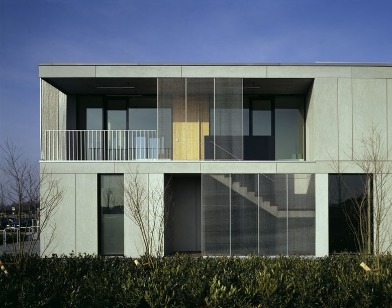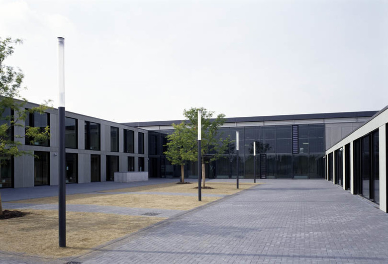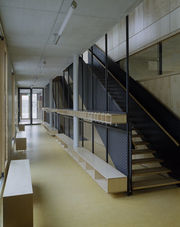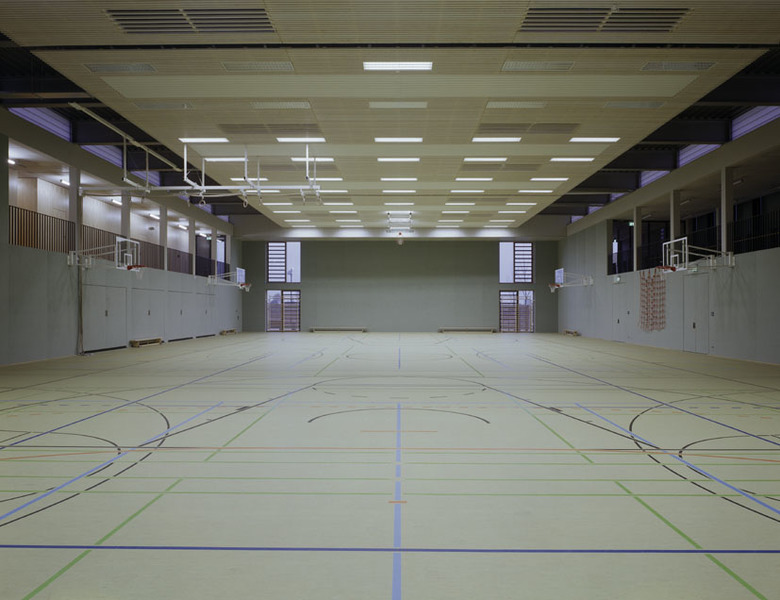 Symbiose – Fünf Nutzer ergeben unzählige Nutzungsvarianten für einen einzigen Gebäudekomplex. Das ist die Ausnahme. In Lübeck treffen Polizei, Kirche, Sport, Schulbetrieb und Kindertagesstätte aufeinander. Die strenge Führung übernimmt der Sichtbeton, die Lebendigkeit schafft das Farbkonzept, die vielfältige Nutzung wird vom zentralen Innenraumplatz erschlossen und durch geplanten Freiraum realisiert. Vorbildlich und sogar rekordverdächtig sind die Werte beim Energiebedarf, durch Blockheizkraft werden Traumwerte erreicht: 15 kWh/ (m² x a) Jahresprimärenergiebedarf, mit einem Anteil von 98,8% an erneuerbarerer Energie nach EnEV/ Energieeinsparverordnung.