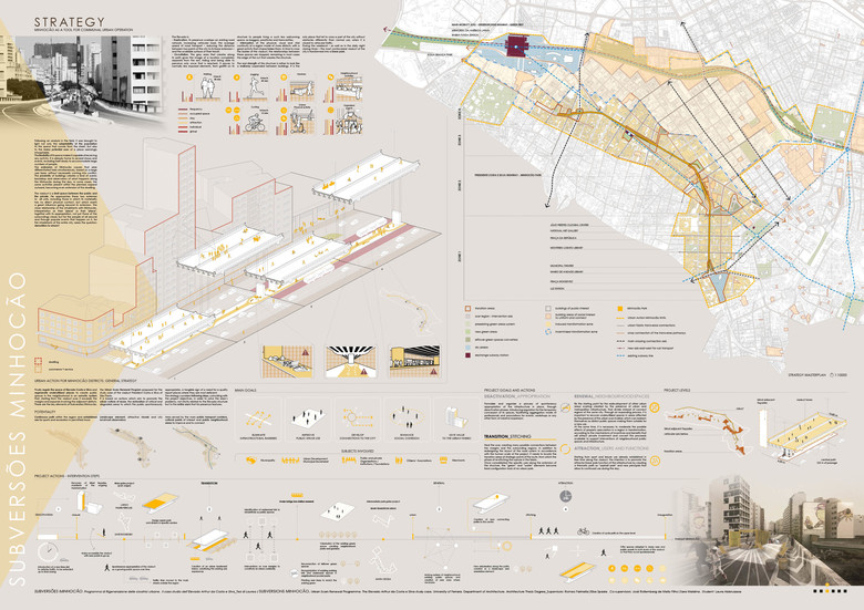 The project is developed in order to preserve the viaduct character as a walkway through the buildings and a flexible meeting place. These main factors of its current operation gives the basis to transform a habit into an opportunity of improving the whole city downtown, relating Minhocão to other neighborhood public spaces to be redeveloped and reconnected.