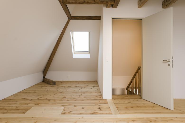 Das sanierungsbedürftige Eckhaus wurde in Stand gestellt und ausgebaut. Der Spagat zwischen erhaltenswertem Bestand und neuen Benutzeransprüchen wurde sehr sorgfältig durchdacht und geplant. Ein Anbau um die Wohnqualität den heutigen Standards anzupassen war naheliegend. Die bestehende Grundrissfigur wird in der Struktur belassen. Der Anbau lehnt sich an die architektonische Schlichtheit des Bestandes und konkurrenziert die 3-teilige Wohneinheit nicht. In der Höhe schliesst der 2-geschossige Gebäudekörper unterhalb der bestehenden Traufe an, ohne das charakterbildende Dach und das Holzfries zu beschädigen.