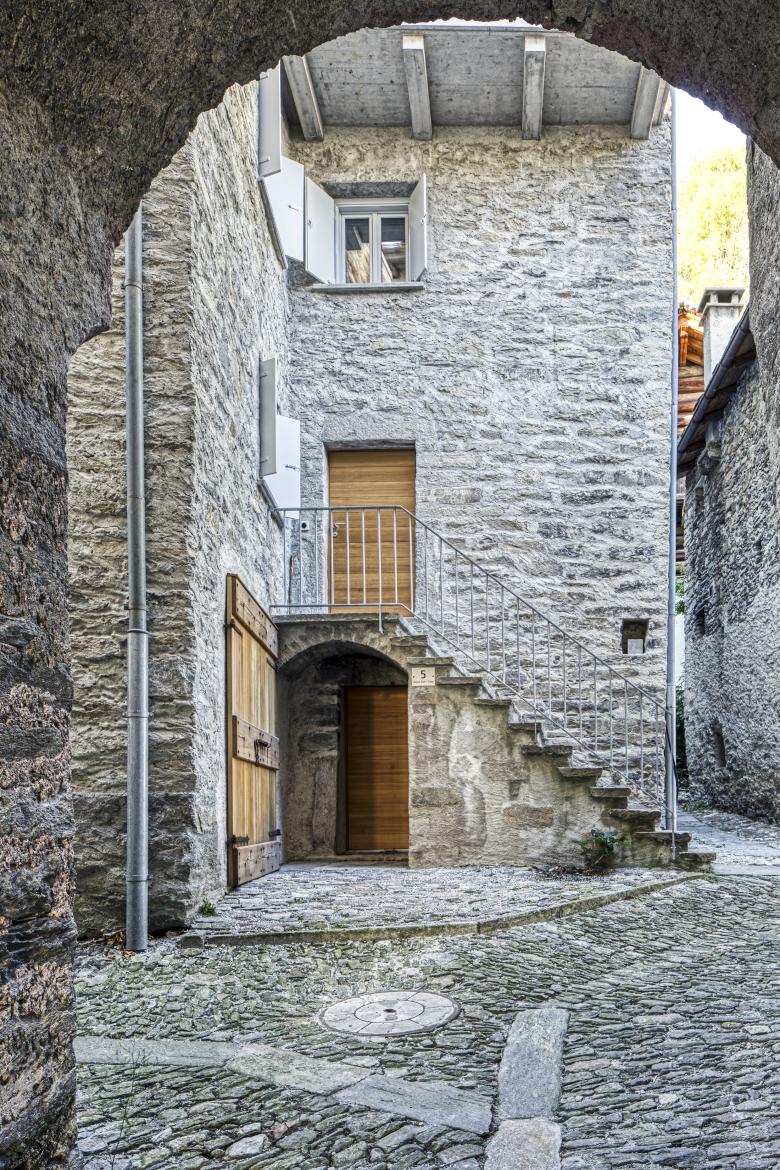Die Naturstein-Fronten in Pietra Rasa wurden restauriert, die ursprünglichen Fenster mit ihrem typischen Aussehen erhalten. Die neuen weisen eine als modern erkennbare Form auf und werden mittels einer Einfassung aus glattem Beton hervorgehoben.