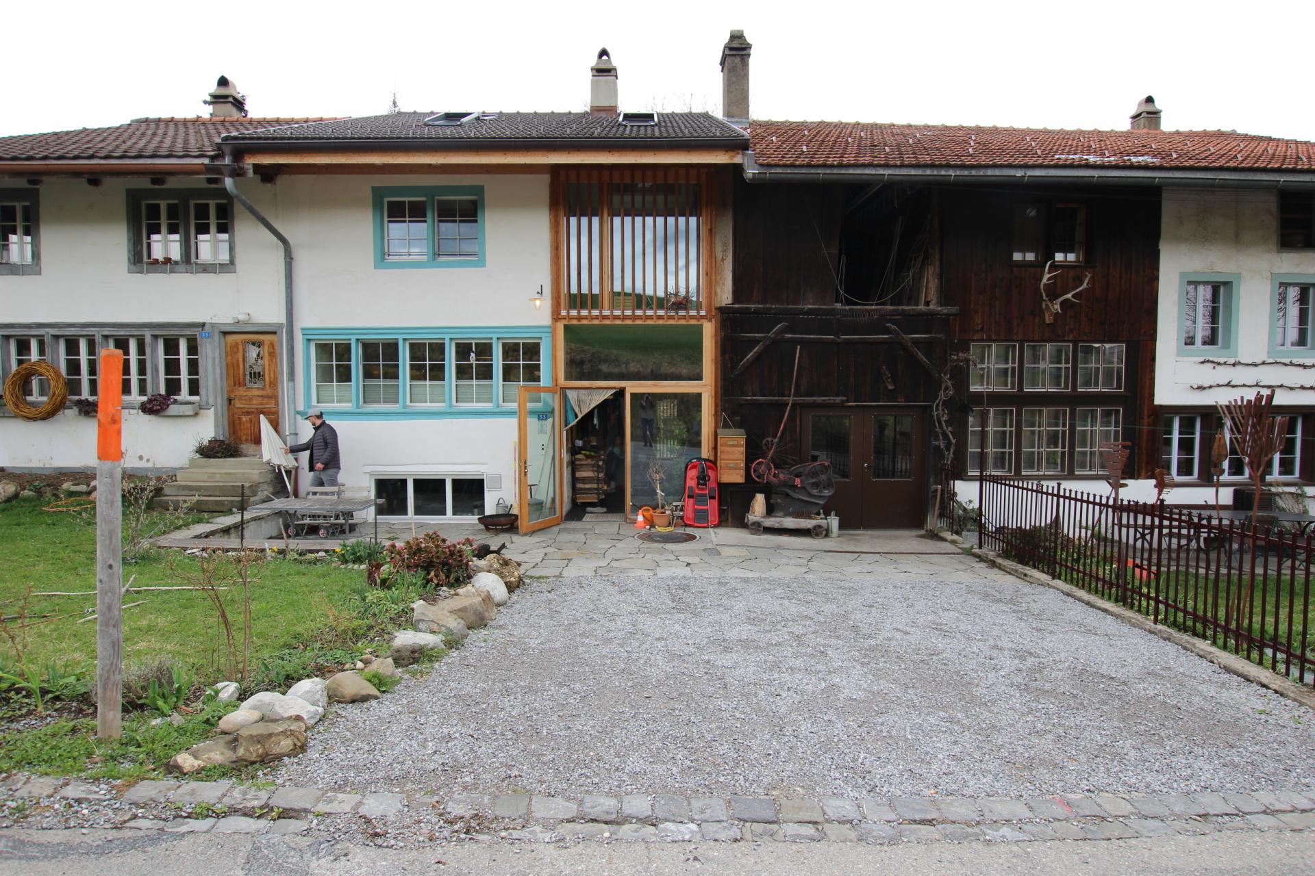 In Bauma baute Saikal Zhunushova 2019 einen Flarzteil um, also eines von mehreren aneinandergebauten historischen Wohnhäusern. Die verglaste Fassade ist nach Südosten orientiert. Geheizt wird der Bau im Zürcher Oberland nur durch die hereinscheinende Sonne und einen Grundofen. Der maximale Heizleistungsbedarf beträgt rund 5.2 kW. (Foto: © Saikal Zhunushova)
