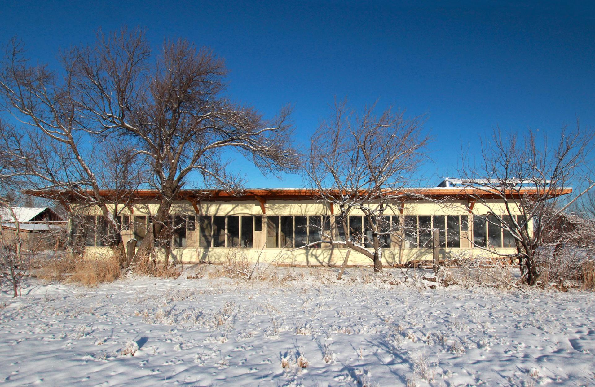 Die inklusive Schule im kirgisischen Dorf Sosnovka konstruierte Saikal Zhunushova aus Stroh, Holz und Lehm. Das 2022 fertiggestellte Bauwerk wird hauptsächlich von der Sonne passiv geheizt. Für die kältesten Wintertage steht zusätzlich eine Wandheizung zur Verfügung. Eine aktive Kühlungsanlage gibt es nicht. (Foto: © Meerbek Kanybek Uulu)